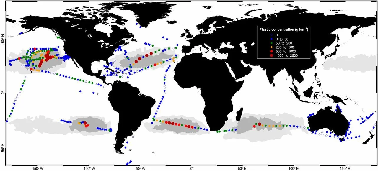 As the map shows, the largest of the five gyres, the Great Pacific Garbage Patch, has attracted the most ocean plastic. Not surprisingly it has also attracted the most attention when it comes to cleanup projects. Ideally the cleanup systems trialled in the GPGP can be implemented in the other gyres when proven successful.